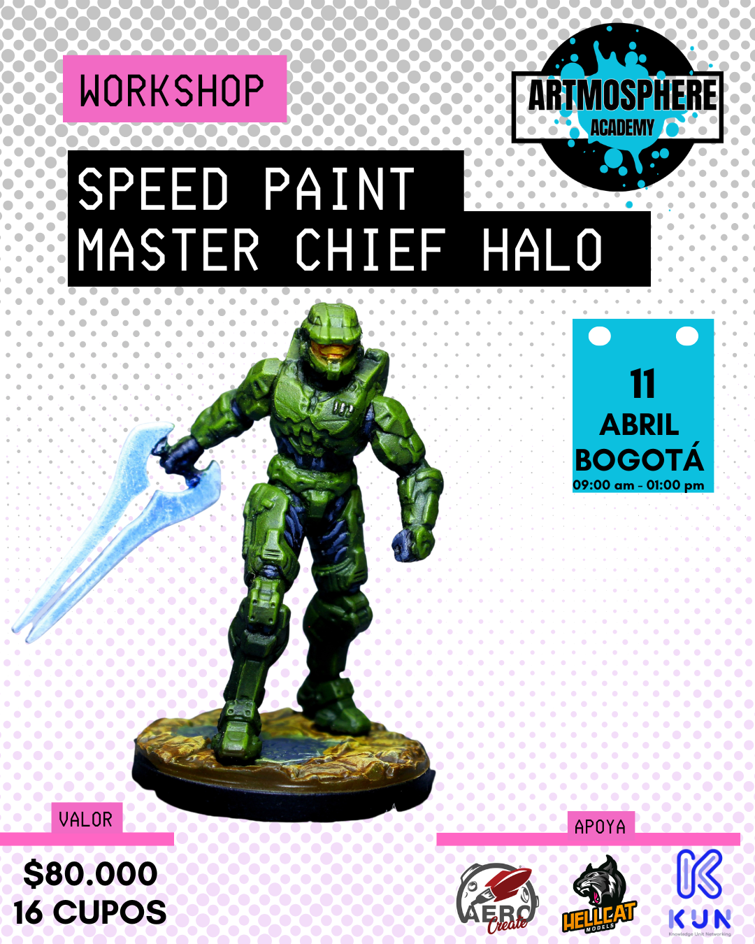 En este workshop pintaremos una figura de Master Chief usando técnicas modernas de Speed Paint, trabajando contrastes, sombras rápidas y detalles que elevan el acabado final.