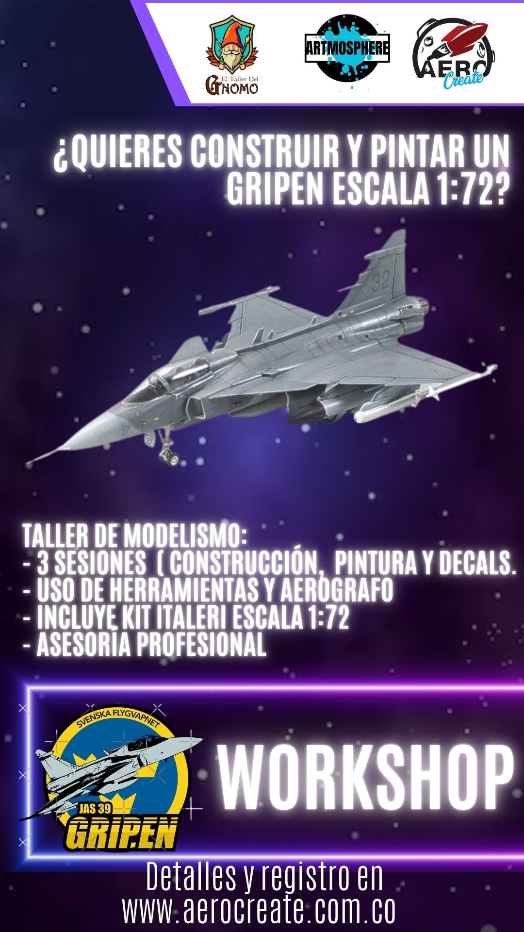 Taller de modelismo Gripen, información al Whatsapp 3157775631